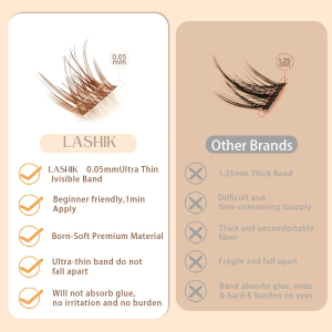 - Efect Natural și Delicat: Nuanța naturală de maro și banda invizibilă fac ca genele să se contopească armonios cu genele tale naturale, creând un efect imperceptibil.